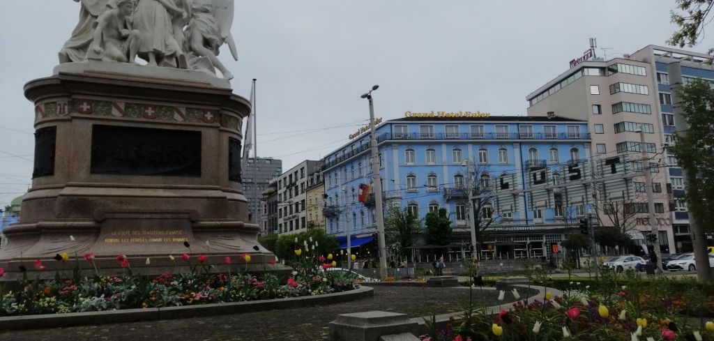 Ayant quitté l’Altstadt, c’est le retour en centre-ville et d’autres surprises comme ces drapeaux suisses dont un a emprunté des allures japonaises inspiré du drapeau impérial.