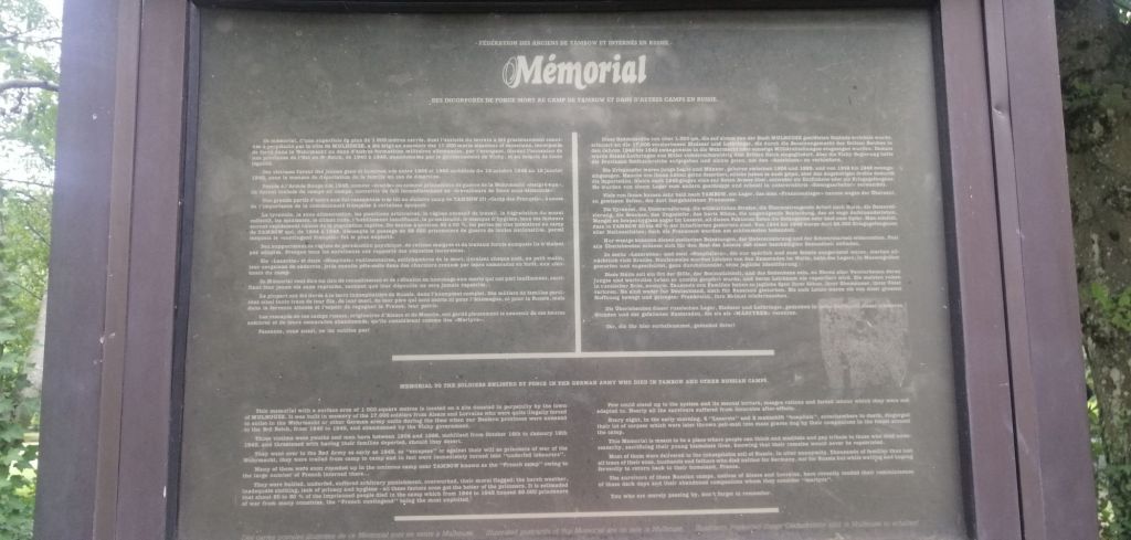 Rue du Belvédère à Mulhouse se trouve le memorial de Tambow qui rend hommage aux victimes de ce camp russe.