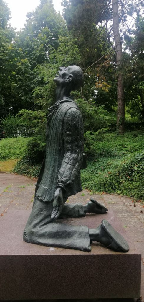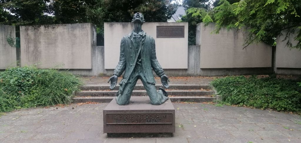 Au loin, une statue en position de martyre illustre les victimes mortes de faim et d’épuisement. En moyenne, quatre mois après leur arrivée, elles décédaient, les températures négatives et le manque de nourriture ayant eu raison d’elles.